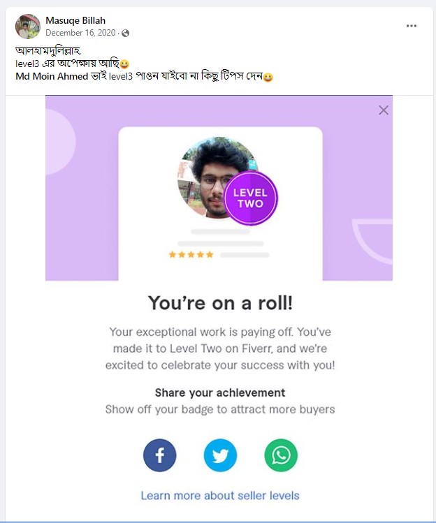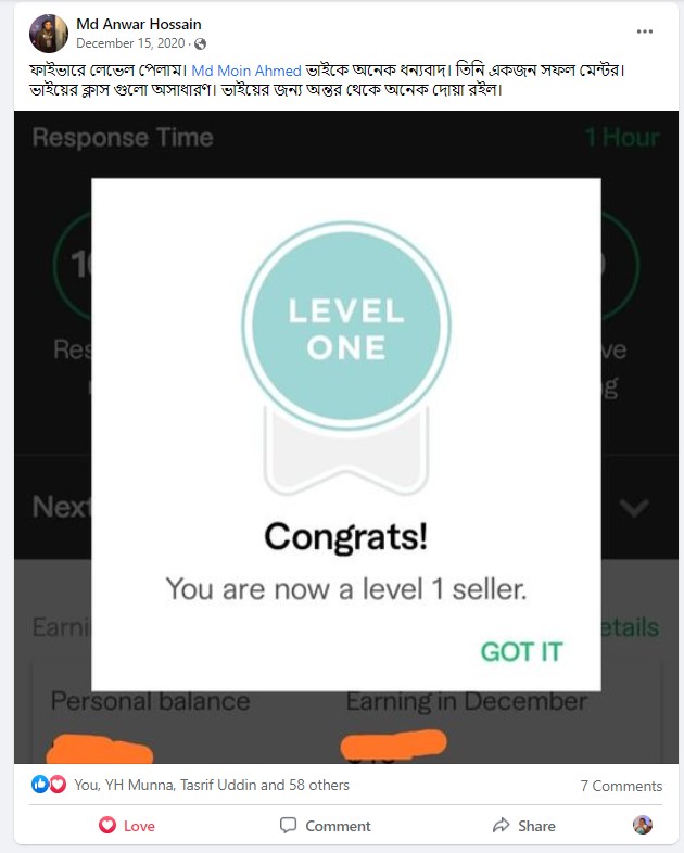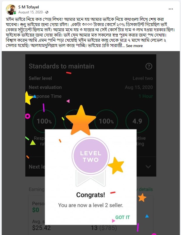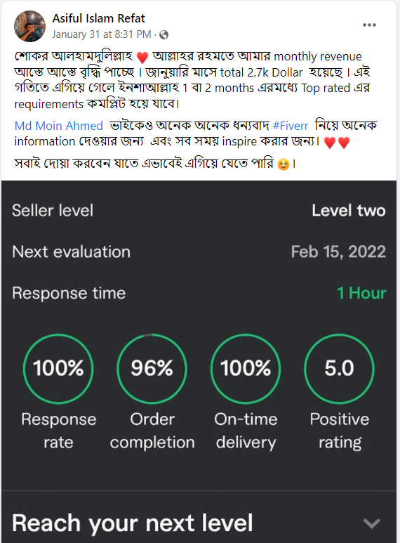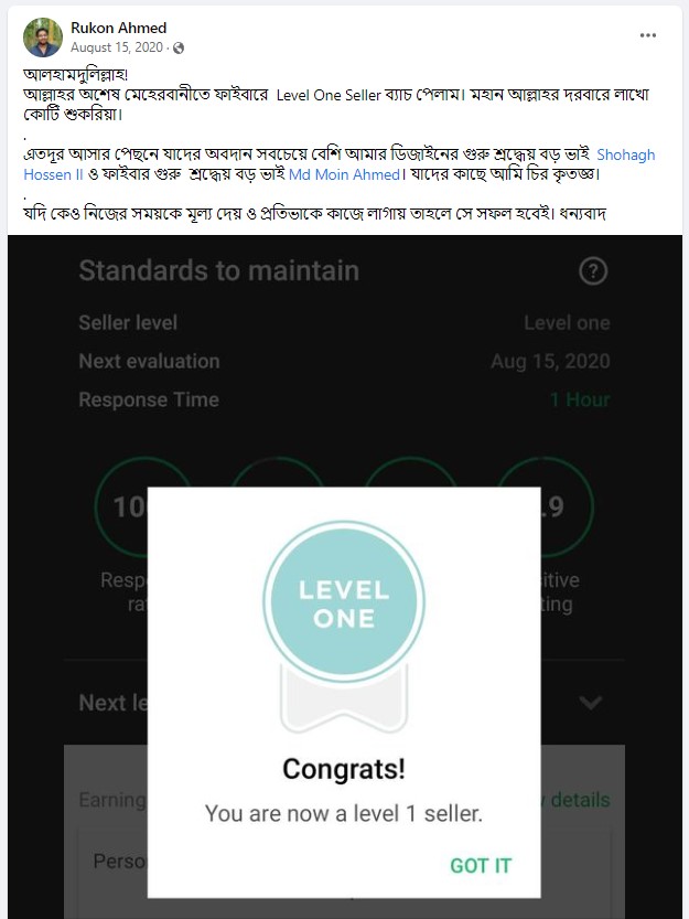 ধৈর্য্য সহকারে  সঠিক জ্ঞান এবং তার চর্চাই এনে দিতে পারে ফাইভারে সফলতা…